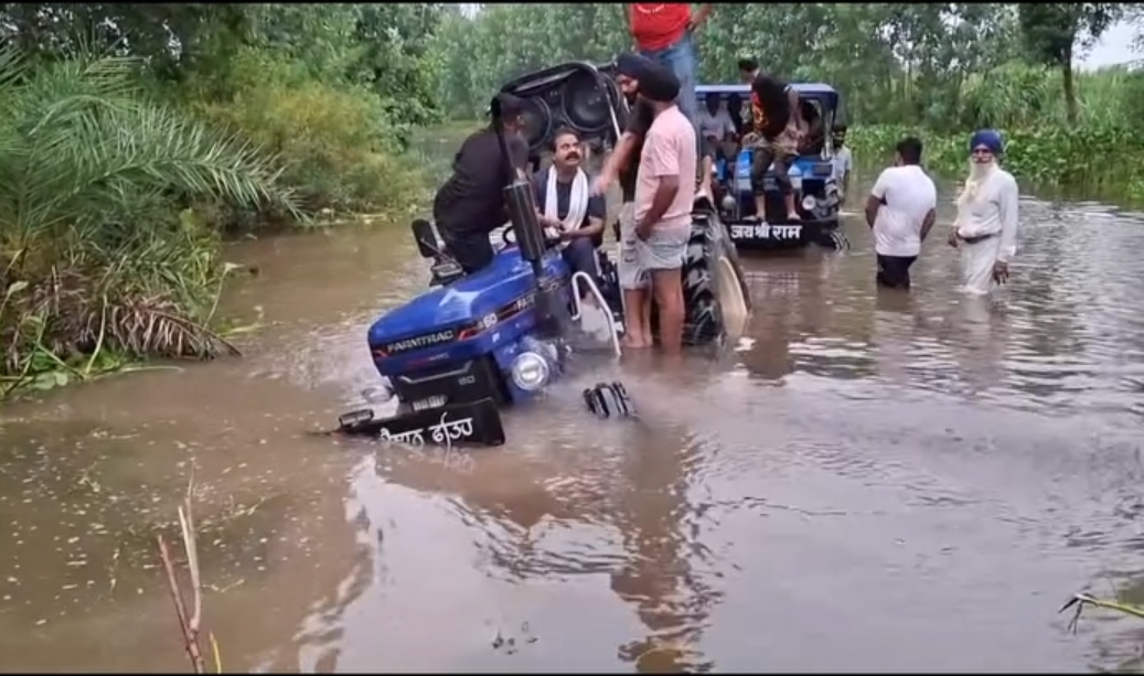 उसी टैक्टर का एक हिस्सा पानी के कारण गहरे गड्ढे में गिर गया। जिसके बाद उनका काफिला बीच में रुक गया। लेकिन गनीमत रही कि इस हादसे में कोई जनहानि नहीं हुई हैं। आपको बता दे कि पूर्व में भी विधायक उमेश कुमार ने बारिश के कारण कई गांवों में बाढ़ की स्थिति से लोगों को ग्रामीणों और अपने काफिले के साथ मिलकर रेस्क्यू कर उनको सुरक्षित स्थानों पर पहुंचाया था।