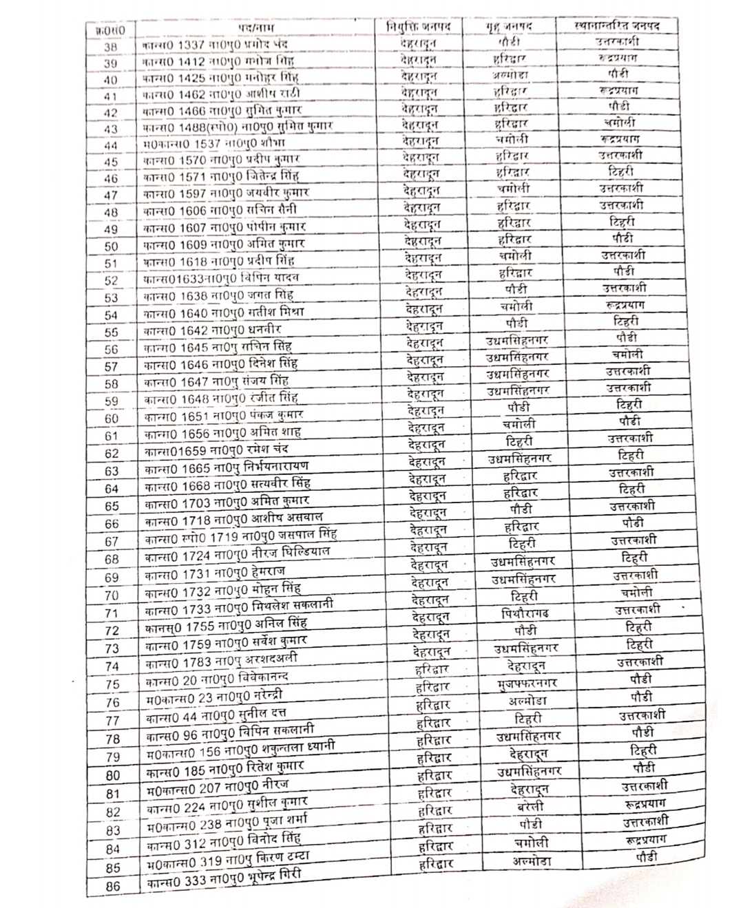 वहीं मैदानी जिलों से पर्वतीय जिलों में एएसआई 13, हेड कॉन्स्टेबल 49 और 122 कॉन्स्टेबल का ट्रांसफर किया गया है। परिक्षेत्र के कुल 344 कर्मचारियों का ट्रांसफर किया गया।