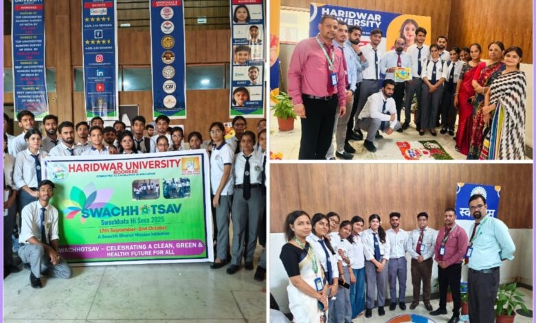 क्लिक उत्तराखंड:-(बुरहान राजपूत) उन्नत भारत अभियान के अंतर्गत हरिद्वार विश्वविद्यालय में स्वच्छोत्सव 2025 कार्यक्रम का आयोजन किया गया। यह कार्यक्रम “स्वच्छता ही सेवा” थीम पर आधारित था, जिसका उद्देश्य विद्यार्थियों और समाज को स्वच्छता के प्रति जागरूक करना था।