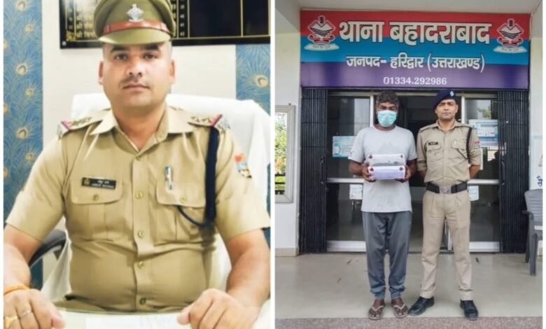 चेकिंग के दौरान बहादराबाद बाजार चौकी प्रभारी अपनी टीम के साथ अभियान को चला रहे थे इसी दौरान पुलिस टीम ने एक लाल स्कूटी को रोककर स्कूटी सवार संदिग्ध की चेकिंग की।