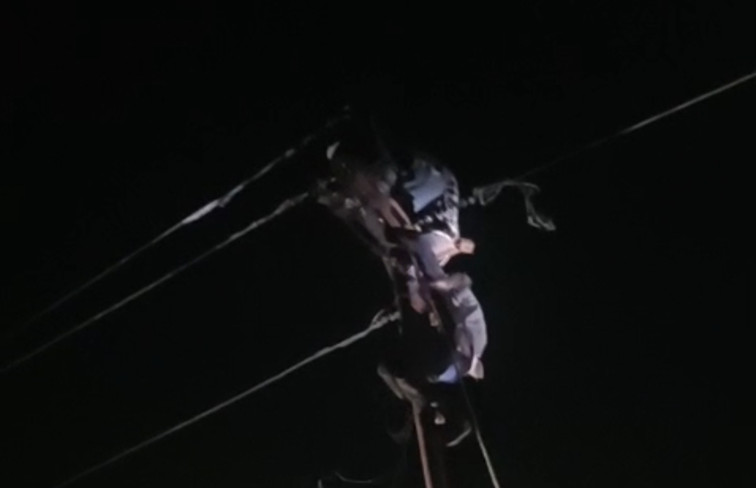 फॉल्ट ढूंढने निकले बिजली कर्मचारी, तारों पर झूलता दिखाई दिया चोर, क्रेन की लेनी पड़ी मदद, मचा हड़कंप...(देखिए वीडियो)