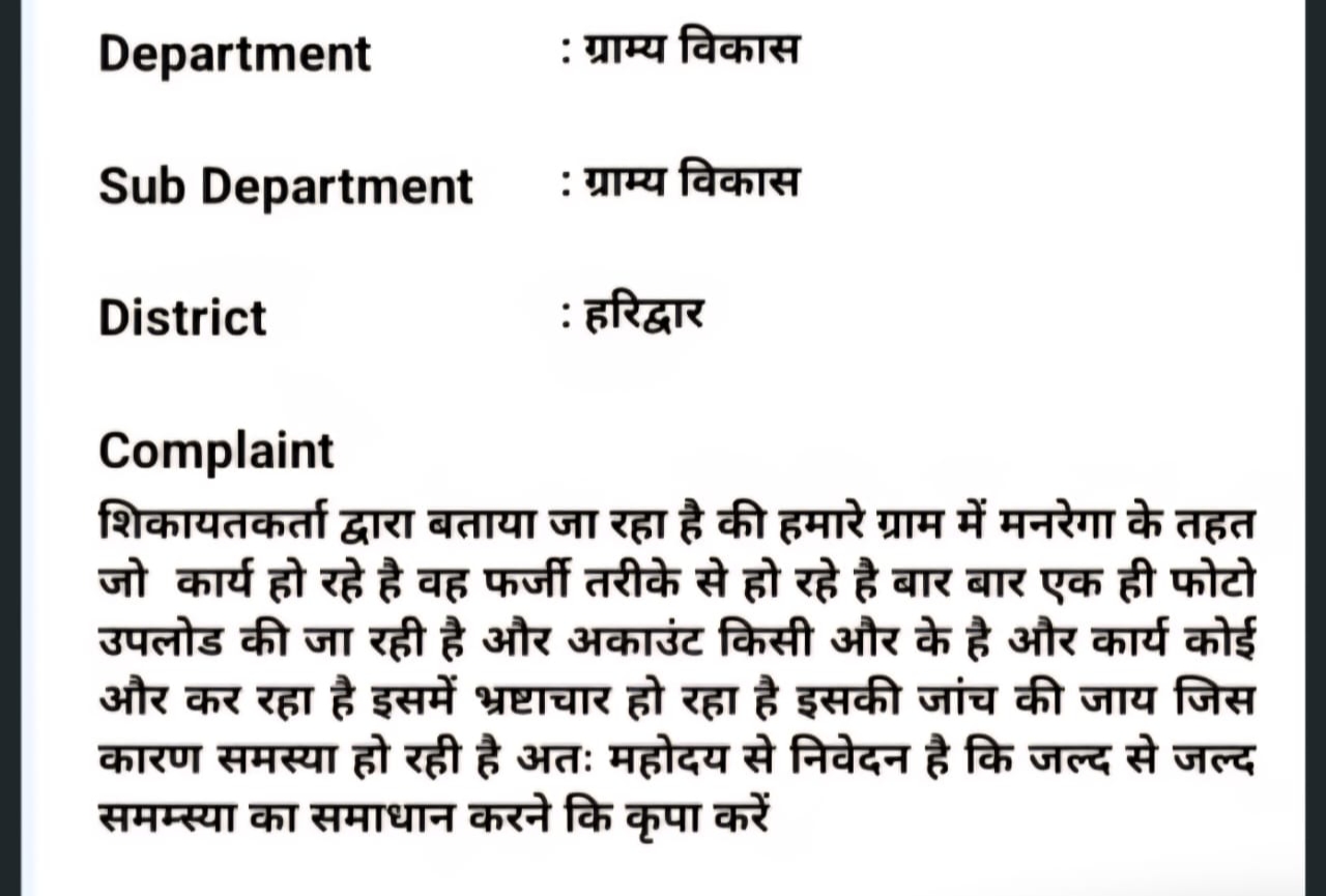 मुख्यमंत्री पोर्टल पर की गई भ्रष्टाचार की शिकायत, आरोप, नाम किसी ओर का और काम पर दिखाए जा रहे हैं कोई ओर...(पढ़िए खबर)