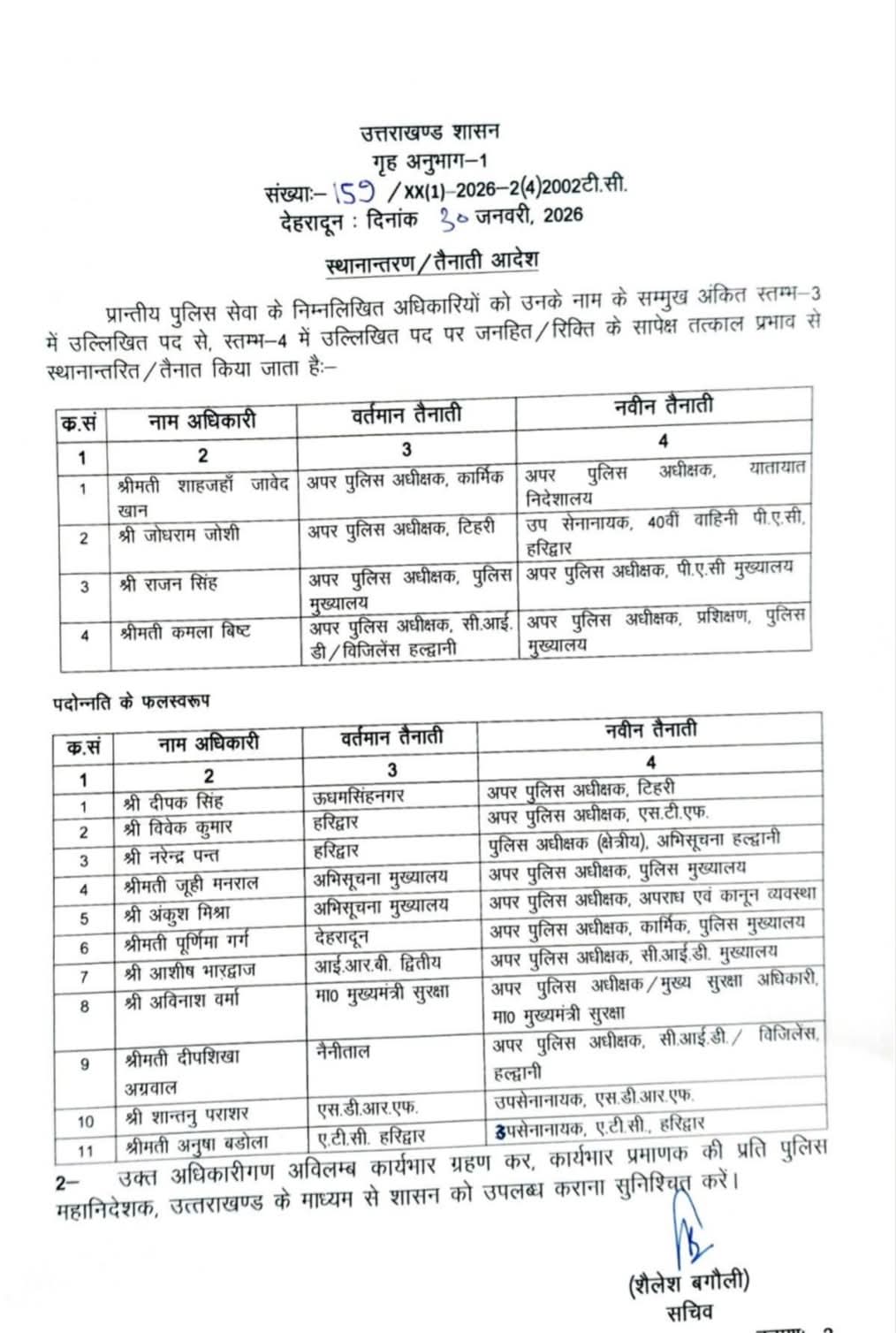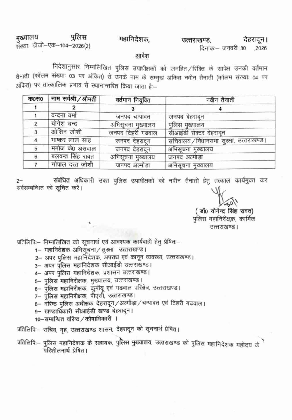क्लिक उत्तराखंड:-(ब्यूरो) उत्तराखंड में आज पुलिस महकमे में बड़ा बदलाव किया गया है। देर शाम कई अधिकारियों के तबादले किए गए। जिसके आदेश भी जारी हो गए हैं।