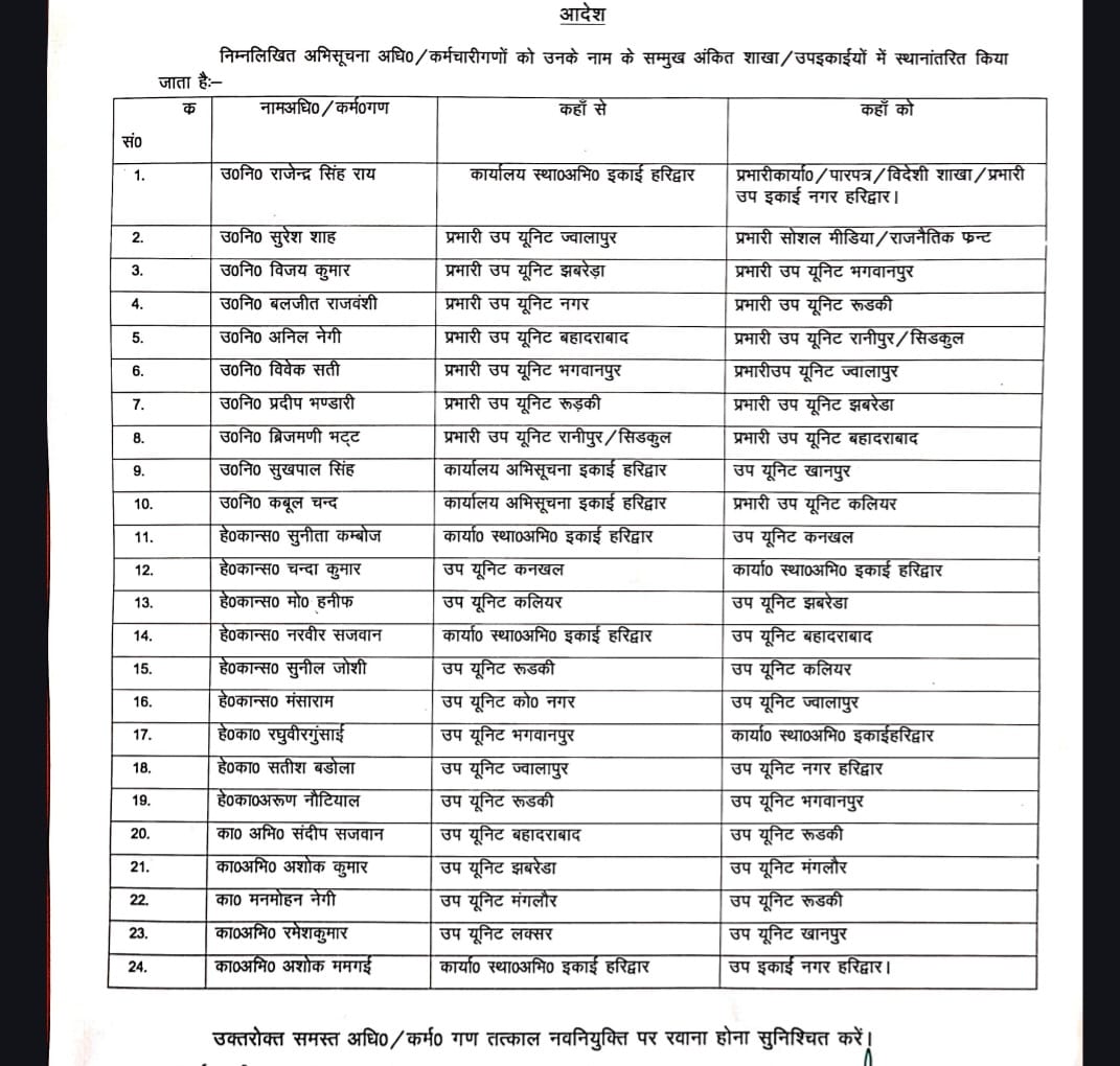 क्लिक उत्तराखंड:-(बुरहान राजपूत) आगामी कुंभ मेला और चुनावी सीजन को ध्यान में रखते हुए एसएसपी हरिद्वार प्रमेन्द्र सिंह डोबाल ने खुफिया विभाग में बड़ा फेरबदल किया है।