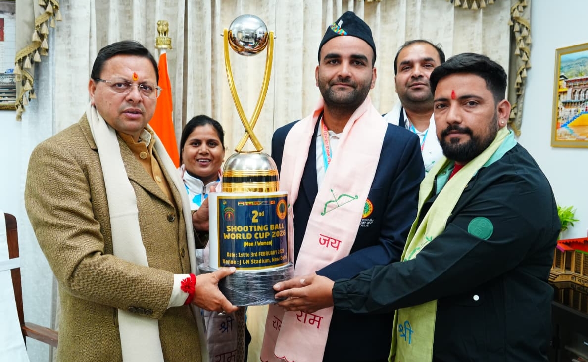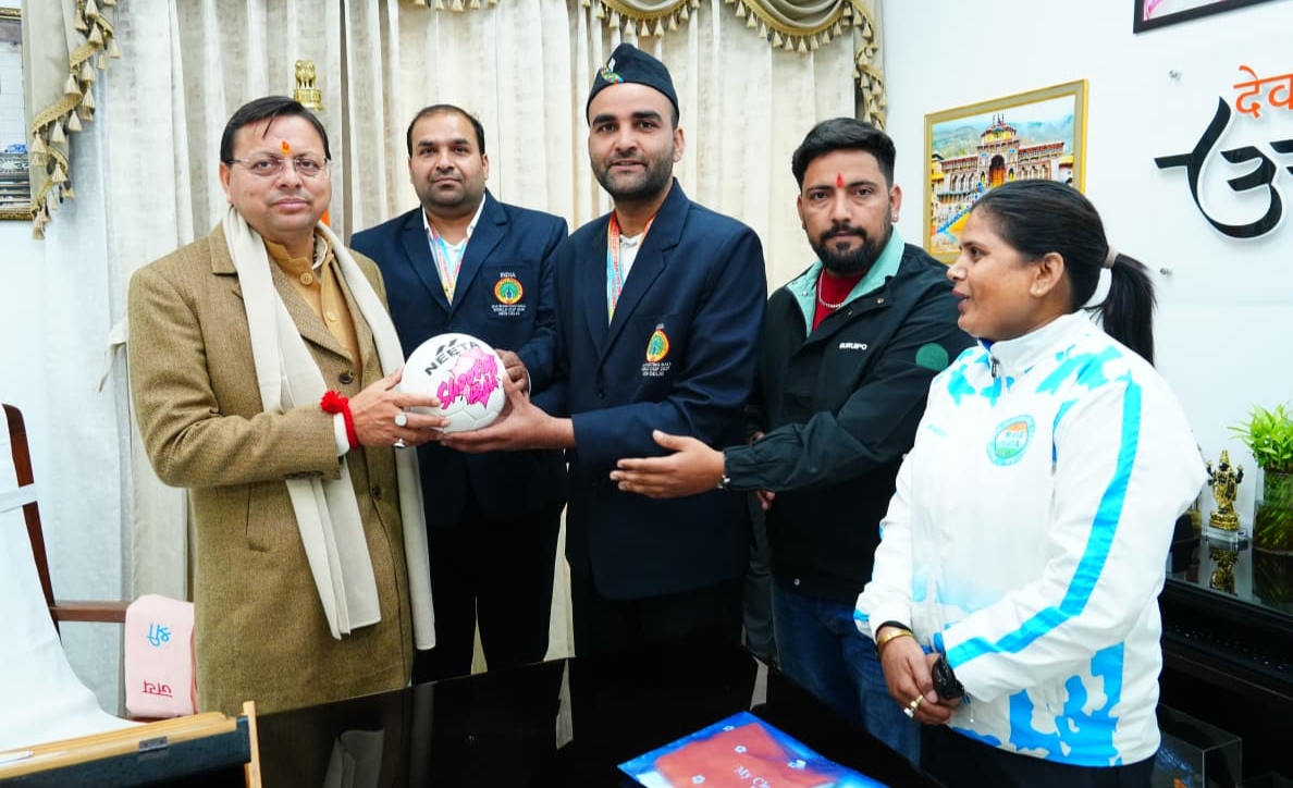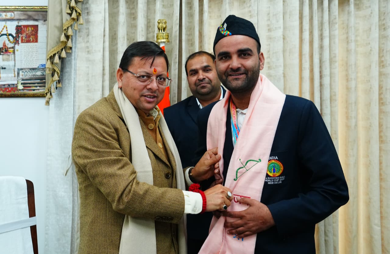 मुख्यमंत्री पुष्कर सिंह धामी ने शूटिंग बॉल में मेडल जीतने वाले खिलाड़ियों को किया सम्मानित