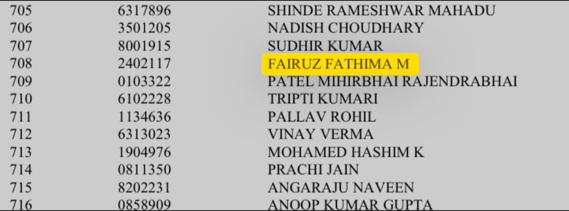क्लिक उत्तराखंड:-(बुरहान राजपूत) पिरान कलियर के वार्ड 04 की होनहार बेटी फैरुज फातिमा पुत्री इकबाल त्यागी ने संघ लोक सेवा आयोग (UPSC) की प्रतिष्ठित परीक्षा में 708वां स्थान हासिल कर क्षेत्र का नाम रोशन कर दिया है।