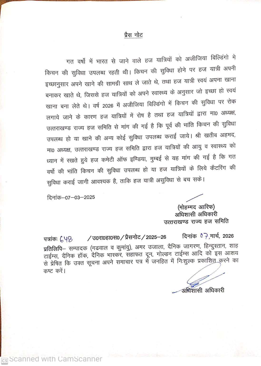 क्लिक उत्तराखंड:-(बुरहान राजपूत) हज यात्रियों के लिए स्वयं कैटरिंग सुविधा (भोजन व्यवस्था) पर सऊदी अरब की ओर रोक लगाने को लेकर हज यात्रियों में पनप रहे आक्रोश को देखते हुए उत्तराखंड राज्य हज समिति की ओर से हज कमेटी ऑफ इंडिया को पत्र भेजकर रोक हटाने की मांग की गई हैं।